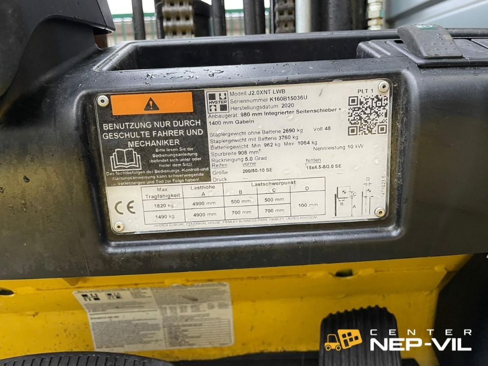 Viličar: HYSTER J2.0XNTNosilnost: 2.000 kgLetnik: 2020Delovne ure: 5.635 hPogon: ELEKTROBaterija: 48V 750AhTeleskop: TRIPLEXBočni pomik: DAPozicioner vilic: NEProsti dvig: DADvižna višina: 4.900 mmGradbena višina: 2.130 mmVilice: 1.400 mmHidravlični razvodnik: 4. VENTILNITip kabine: VARNOSTNI LOKKolesa: BREZSLEDNAStanje: ODLIČNO OHRANJENOGarancija: DAServisno stanje: /.Lokacija ogleda: NA ZALOGI V CENTRALNEM SKLADIŠČU - LJUBLJANA.V podjetju Center NEP-VIL d.o.o. vam poleg PRODAJE nudimo tudi NAJEM in SERVIS viličarjev ter dobavo kvalitetnih REZERVNIH DELOV.